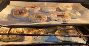 Some I left plain, and others I sprayed with butter-flavored Pam and sprinkled “Everything but the Bagel” seasoning on them.